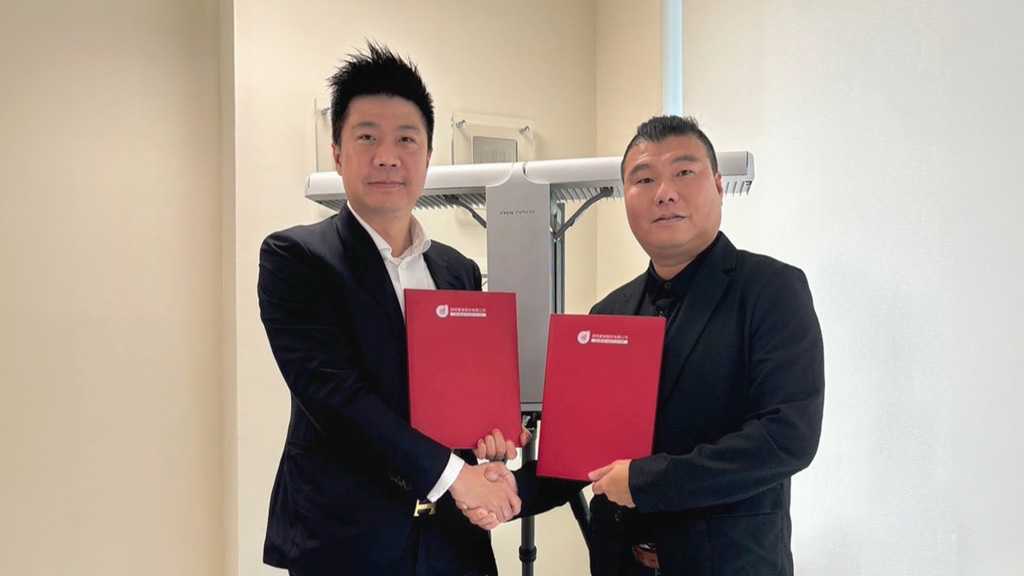 The agreement was signed by Mr. Yu-Chu Wang, Chairman of TRON FUTURE TECH (left), and Mr. Hsiang-Feng Tsai, Chairman of Jiin Ming (right).